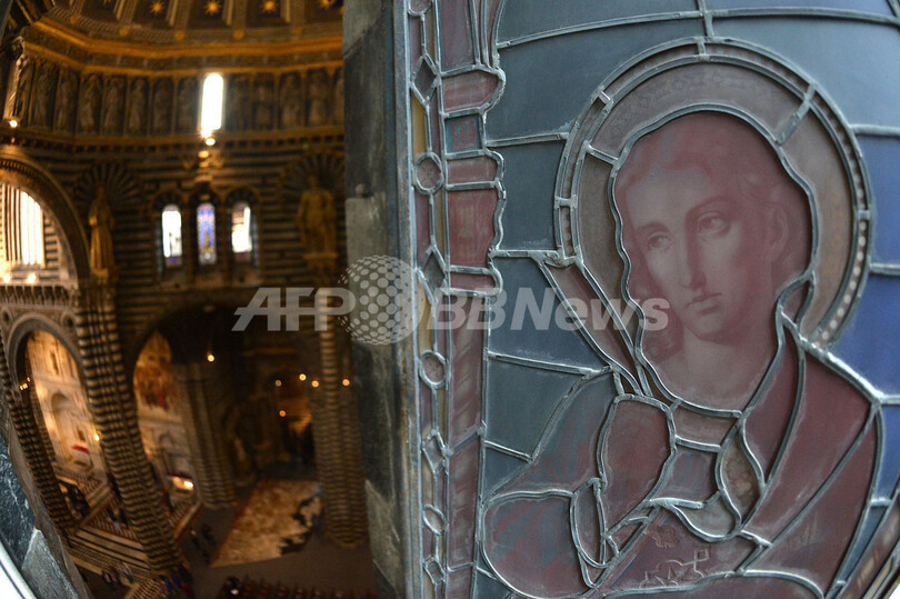 【4月16日 AFP】イタリア中部トスカーナ州のシエナ(Siena)にあるシエナ大聖堂で、これまで一般には非公開だった部屋をめぐるツアー「The Gate of Heaven(天国の門)」が今月6日から10月27日まで催行されるのに先立ち、5日に報道陣を対象に部屋が先行公開された。