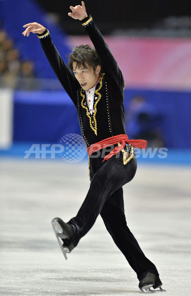 男子ショートプログラム(SP)の演技に臨む無良崇人(Takahito Mura、2013年4月11日撮影)。(c)AFP/KAZUHIRO NOGI