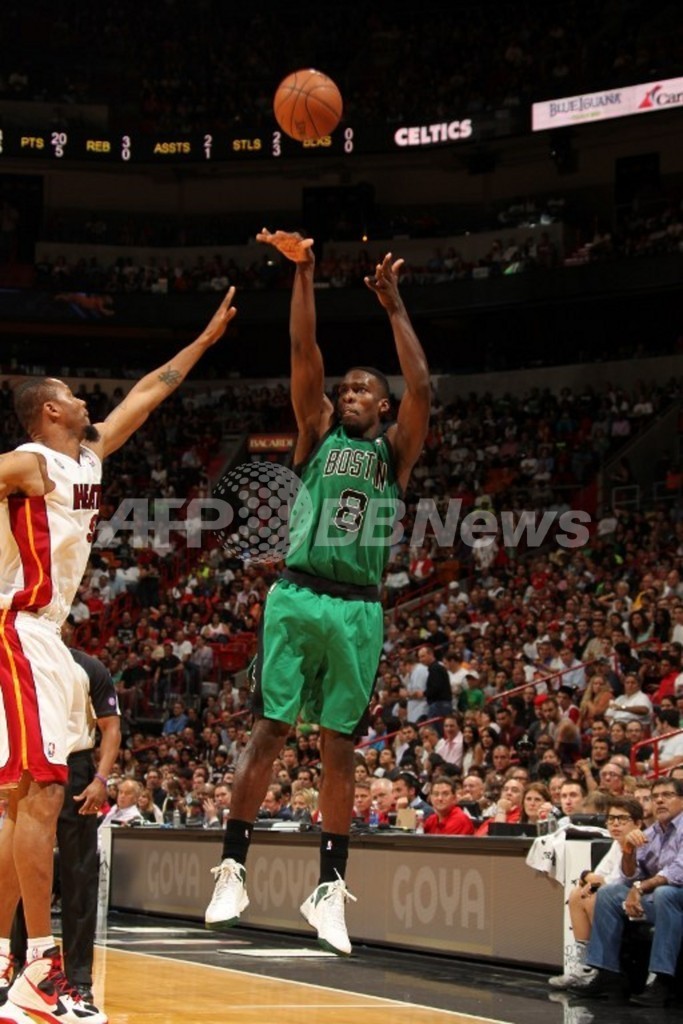 一方、主力のポール・ピアース(Paul Pierce)とケビン・ガーネット(Kevin Garnett)が欠場したセルティックスは、ジェフ・グリーン(Jeff Green)が25得点、ジョーダン・クロフォード(Jordan Crawford)が20得点を記録した。(c)AFP