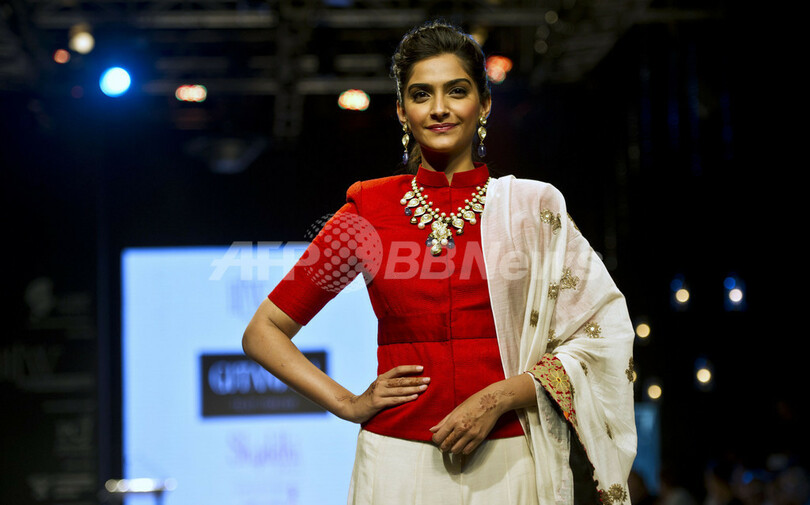 写真は、ファッションショーの様子(2013年4月12日撮影)。(c)AFP/Prakash SINGH