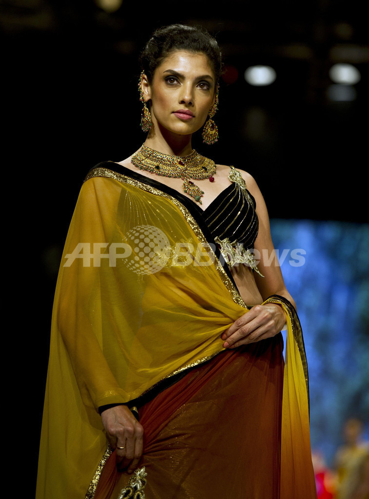 写真は、ファッションショーの様子(2013年4月12日撮影)。(c)AFP/Prakash SINGH