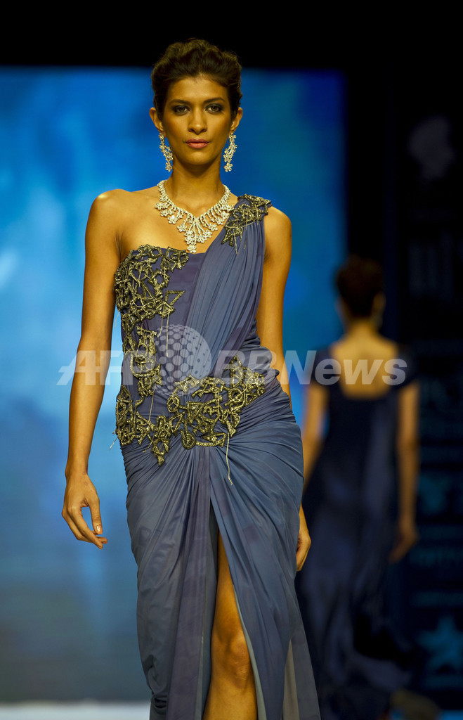 【4月13日 AFP】インド・ニューデリー(New Delhi)で12日、ジェム・アンド・ジュエリー・フェア(Gem and Jewellery Fair)が開幕、豪華な宝飾品を身に付けたモデルがランウェイを歩くファッションショーが行われた。