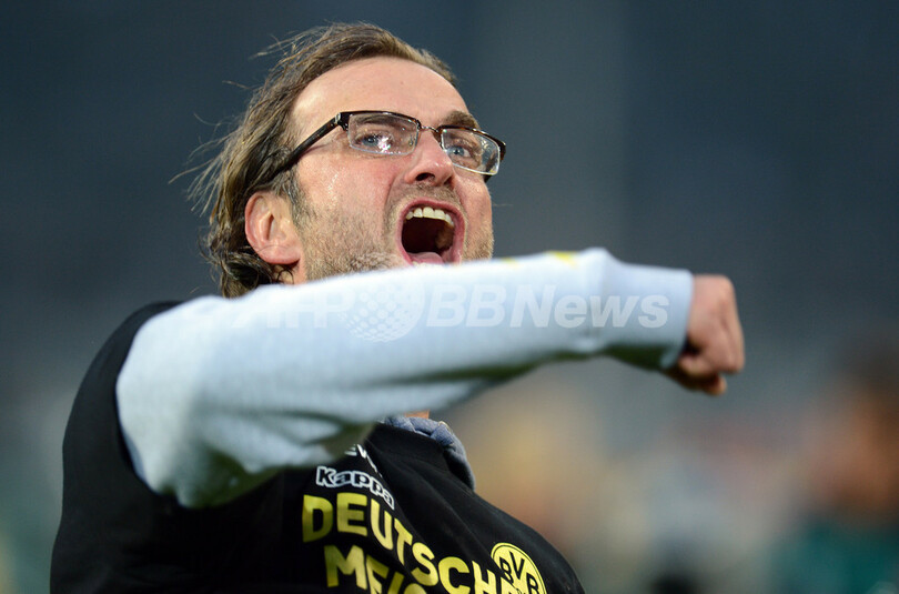 2010-11シーズン、2011-12シーズンとブンデスリーガ1部を連覇したドルトムントの試合では、ベースボールキャップをかぶったクロップ監督がピッチ脇を歩き回るのがおなじみの光景となっていた。(c)AFP