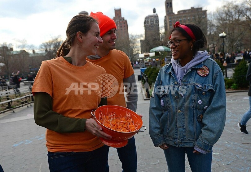【4月17日 AFP】米当局がフランス産チーズ「ミモレット」の輸入を禁止したことに対し、ニューヨーク(New York)で13日、約40人が抗議デモを行い、街頭で味見用のチーズを配った。