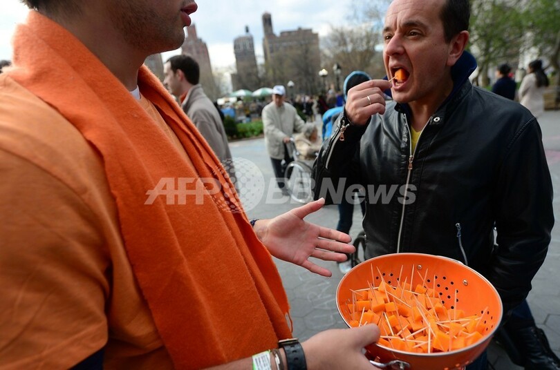 【4月17日 AFP】米当局がフランス産チーズ「ミモレット」の輸入を禁止したことに対し、ニューヨーク(New York)で13日、約40人が抗議デモを行い、街頭で味見用のチーズを配った。