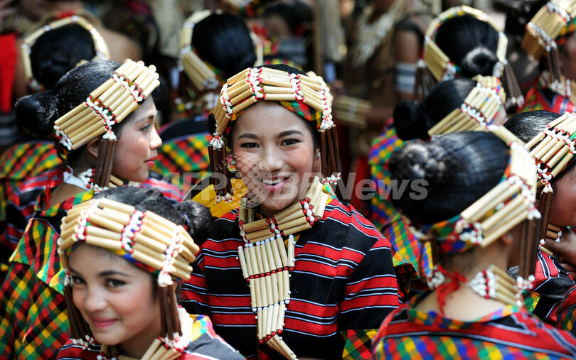 3日間のフェスティバルには多数の島々からなるフィリピンの各地域から、文化や習慣が異なるさまざまな部族の代表が参加し、パレードなどを行った。(c)AFP