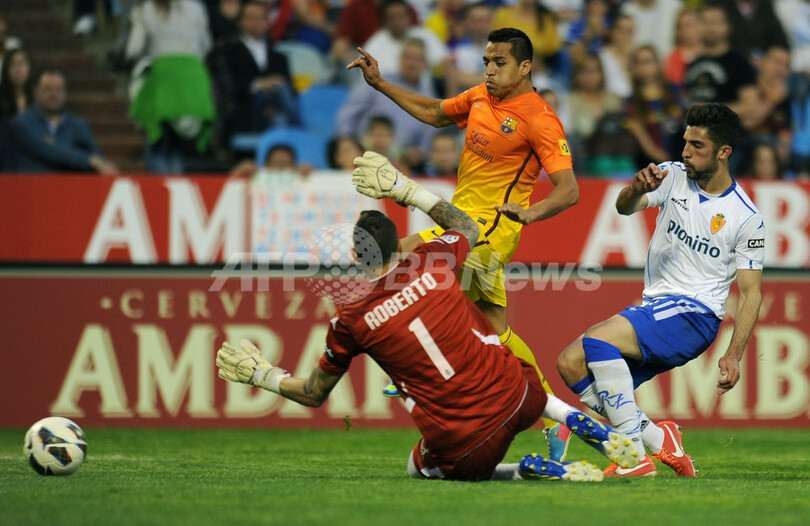 負傷したリオネル・メッシ(Lionel Messi)らを欠き、普段とは違う顔ぶれで試合に臨んだバルセロナだが、不調に悩むサラゴサに圧倒的な強さを見せ、22度目のリーグ優勝に近づいた。