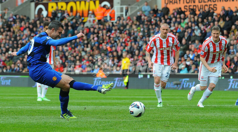 ユナイテッドはマイケル・キャリック(Michael Carrick)の得点で先制すると、後半なかばにはロビン・ファン・ペルシー(Robin Van Persie)が11試合ぶりの得点をPKで決め、ストークに完勝した。