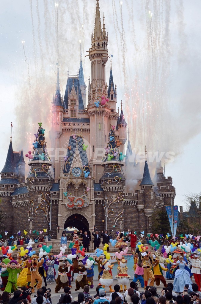 【4月15日 AFP】千葉県浦安市にある東京ディズニーランド(Tokyo Disneyland)が15日、開園30周年を迎えた。園内で開かれた記念セレモニーにはミッキーマウス(Mickey Mouse)やクマのプーさん(Winnie-the-Pooh)といったおなじみの人気キャラクターたちが続々登場し、詰めかけた1万5000人のファンたちと喜びを分かち合った。
