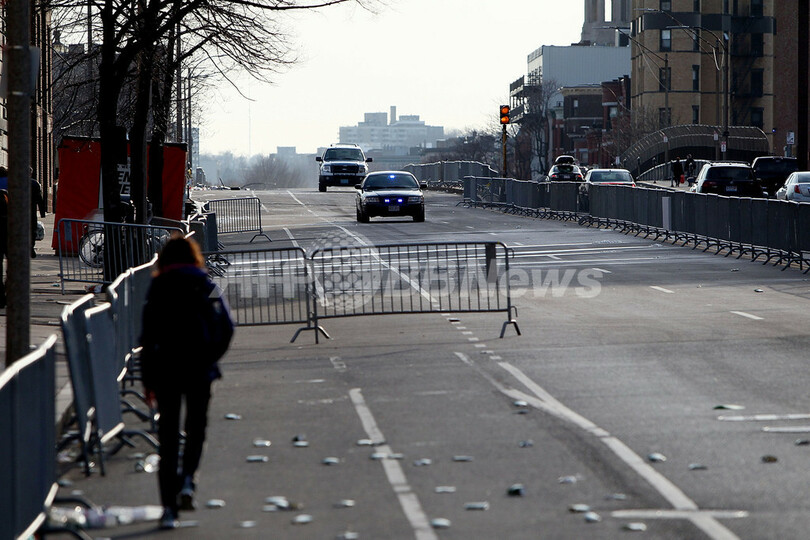 写真は現場近くの通りを走る緊急車両(2013年4月15日撮影)。(c)AFP/Getty Images/Alex Trautwig