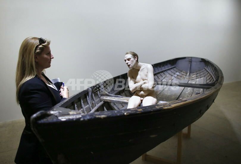 写真はミュエック氏の作品「Man in a boat(小舟の中の男)」(2013年4月15日撮影)。(c)AFP/THOMAS COEX