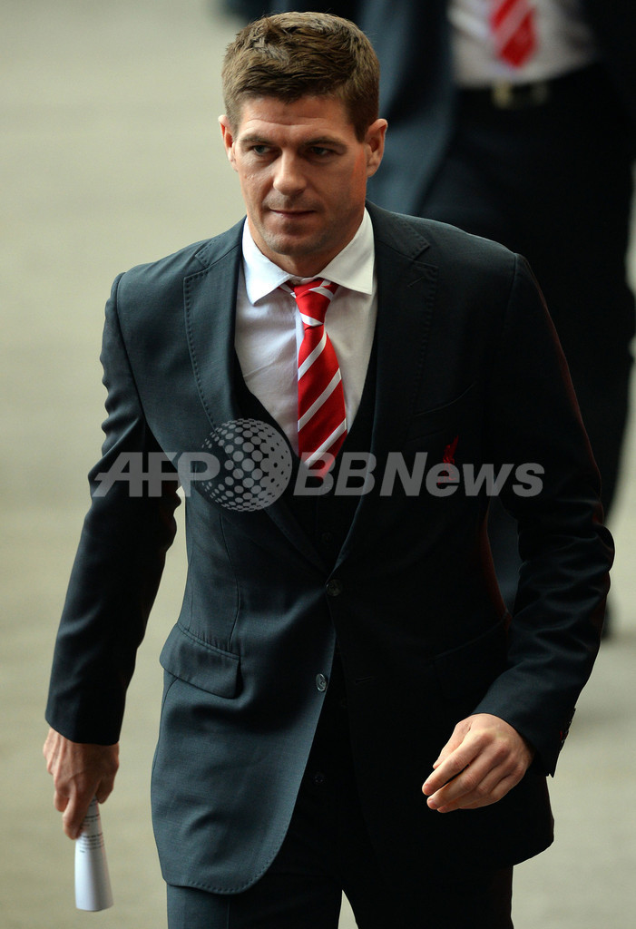 式典に出席したリバプールのスティーブン・ジェラード(Steven Gerrard、2013年4月15日撮影)。(c)AFP/PAUL ELLIS