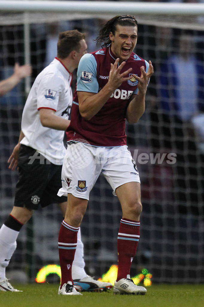 得点機を逃し悔しがるウェストハムのアンディ・キャロル(Andy Carroll、2013年4月17日撮影)。(c)AFP/IAN KINGTON
