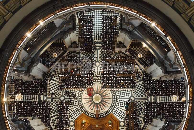 英国のマーガレット・サッチャー(Margaret Thatcher)元首相の葬儀が17日、ロンドン(London)中心部のセントポール大聖堂(St Paul's Cathedral)で執り行われた。葬儀にはエリザベス女王(Queen Elizabeth II)をはじめ、国内外の要人が参列した(2013年4月17日撮影)。(c)AFP/DOMINIC LIPINSKI