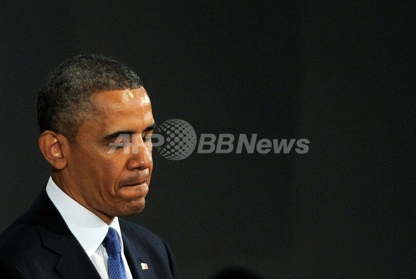 写真は、追悼式で演説するオバマ大統領(2013年4月18日撮影)。(c)AFP/Jewel Samad