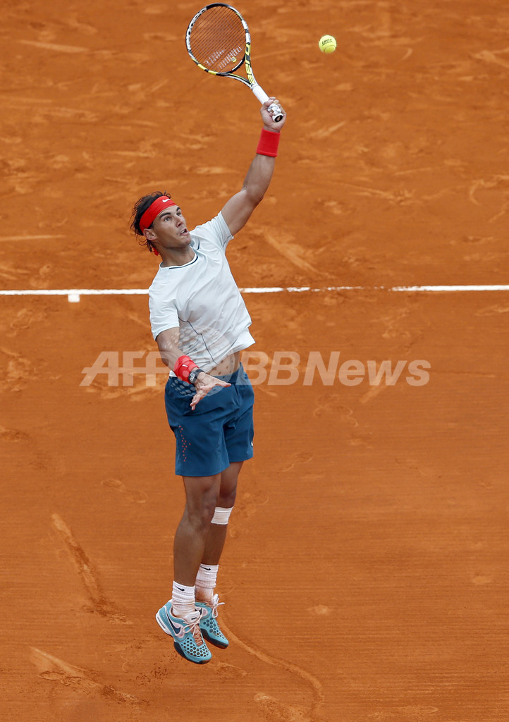 リターンを狙うラファエル・ナダル(2013年4月19日撮影)。(c)AFP/VALERY HACHE