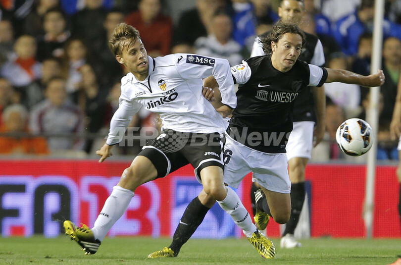 ハーフタイム直前の前半ロスタイムにマラガはジュリオ・バプティスタ(Julio Baptista)が1点を返したが、後半11分にバレンシアのエベル・バネガ(Ever Banega)が5点目を追加した。(c)AFP