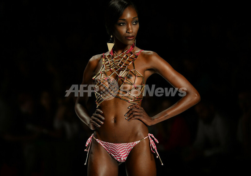 ブラジル最大都市リオデジャネイロ(Rio de Janeiro)で開かれた恒例の「リオ・ファッション・ウィーク(Rio Fashion Week)」で、地場ブランドのトリーヤ(Triya)が、女性向けビーチウェアを中心に2014年のサマーコレクションを披露した(2013年4月19日撮影)。(c)AFP/VANDERLEI ALMEIDA