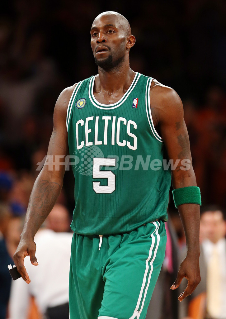 試合に敗れ、コートを後にするボストン・セルティックスのケビン・ガーネット(Kevin Garnett、2013年4月20日撮影)。(c)AFP/Getty Images/Elsa