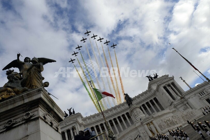 ニュース 政治・経済 伊大統領就任式でアクロバット飛行 2013年4月23日 8:29 発信地:ローマ/イタリア [ ヨーロッパ イタリア ] このニュースをシェア ‹ › ❮ 9/10 ❯ イタリア・ローマ(Rome)で22日、再選されたジョルジョ・ナポリターノ(Giorgio Napolitano)大統領の2期目の就任式が行われた。上空ではイタリア空軍のアクロバット飛行隊「フレッチェ・トリコローリ(Frecce tricolori、3色の矢の意)」がアクロバット飛行を披露した(2013年4月22日撮影)。(c)AFP/ANDREAS SOLARO 画像作成中 ! 【4月23日 AFP】イタリア・ローマ(Rome)で22日、再選されたジョルジョ・ナポリターノ(Giorgio Napolitano)大統領の2期目の就任式が行われた。上空ではイタリア空軍のアクロバット飛行隊「フレッチェ・トリコローリ(Frecce tricolori、3色の矢の意)」が再選を祝うアクロバット飛行を披露した。(c)AFP 政治・経済 一覧へ> メディア・報道関係・法人の方向け 写真・動画 購入のお問合せ>