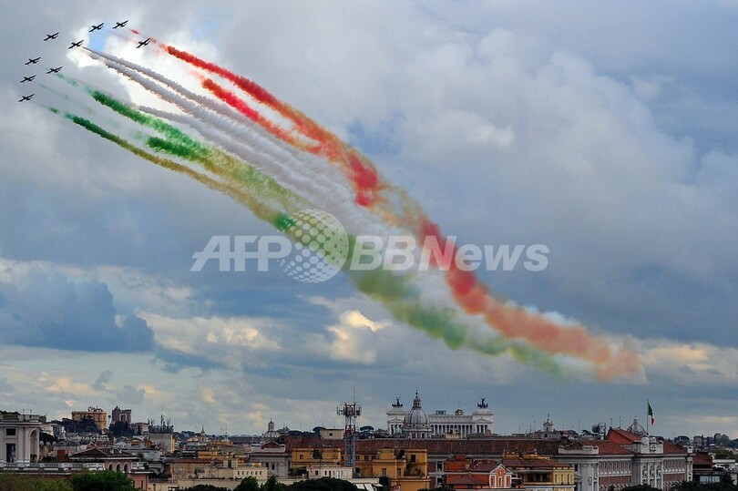 ニュース 政治・経済 伊大統領就任式でアクロバット飛行 2013年4月23日 8:29 発信地:ローマ/イタリア [ ヨーロッパ イタリア ] このニュースをシェア ‹ › ❮ 7/10 ❯ イタリア・ローマ(Rome)で22日、再選されたジョルジョ・ナポリターノ(Giorgio Napolitano)大統領の2期目の就任式が行われた。上空ではイタリア空軍のアクロバット飛行隊「フレッチェ・トリコローリ(Frecce tricolori、3色の矢の意)」がアクロバット飛行を披露した(2013年4月22日撮影)。(c)AFP/TIZIANA FABI 画像作成中 ! 【4月23日 AFP】イタリア・ローマ(Rome)で22日、再選されたジョルジョ・ナポリターノ(Giorgio Napolitano)大統領の2期目の就任式が行われた。上空ではイタリア空軍のアクロバット飛行隊「フレッチェ・トリコローリ(Frecce tricolori、3色の矢の意)」が再選を祝うアクロバット飛行を披露した。(c)AFP 政治・経済 一覧へ> メディア・報道関係・法人の方向け 写真・動画 購入のお問合せ>