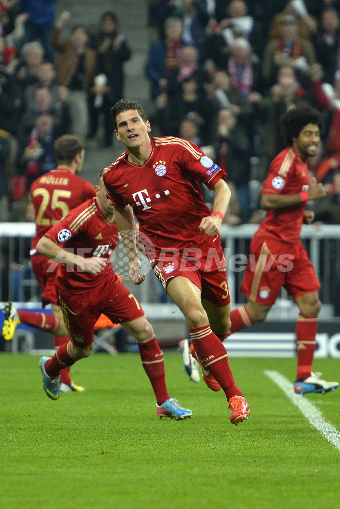 後半4分にチーム2得点目を挙げて歓喜するバイエルン・ミュンヘンのマリオ・ゴメス(Mario Gomez、2013年4月23日撮影)。(c)AFP/ODD ANDERSEN