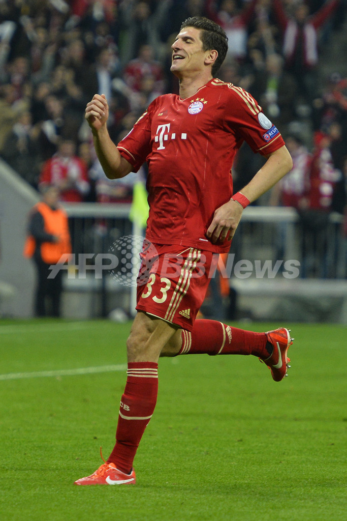 後半4分にチーム2得点目を挙げて歓喜するバイエルン・ミュンヘンのマリオ・ゴメス(Mario Gomez、2013年4月23日撮影)。(c)AFP/ODD ANDERSEN