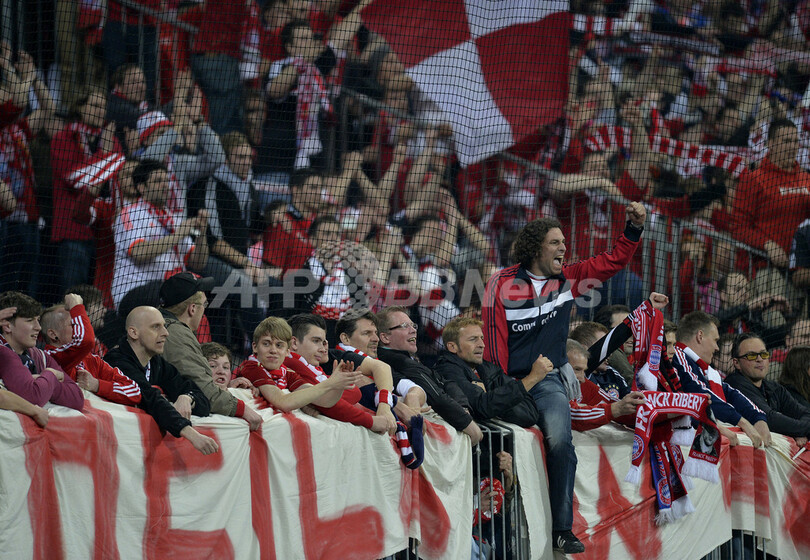 チームの勝利に歓喜するバイエルン・ミュンヘンのサポーター(2013年4月23日撮影)。(c)AFP/ODD ANDERSEN