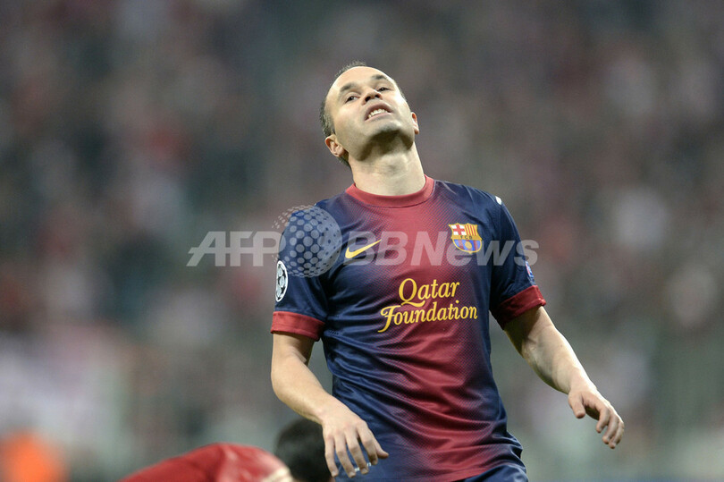 落胆した様子を見せるFCバルセロナのアンドレス・イニエスタ(Andres Iniesta、2013年4月23日撮影)。(c)AFP/CHRISTOF STACHE