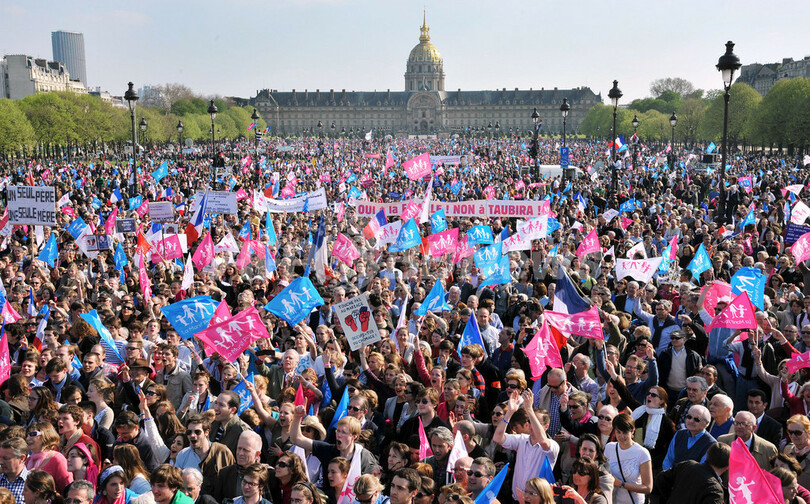フランス議会では、議員たちが乱闘寸前まで過熱した。同性愛活動家らは、同性愛者に対する暴力事件が急増したと報告している。そして法案に反対する数百万人の人々が、徹底抗戦を誓って路上に繰り出した。