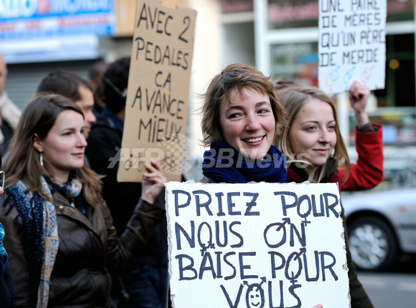 【4月24日 AFP】同性婚は多くの国で大きな混乱を起こすことなく成立したが、政教分離の原則を強く推進し、私生活にまつわる問題には寛大さを示すことで知られる国、フランスでは巨大な嵐を巻き起こした。