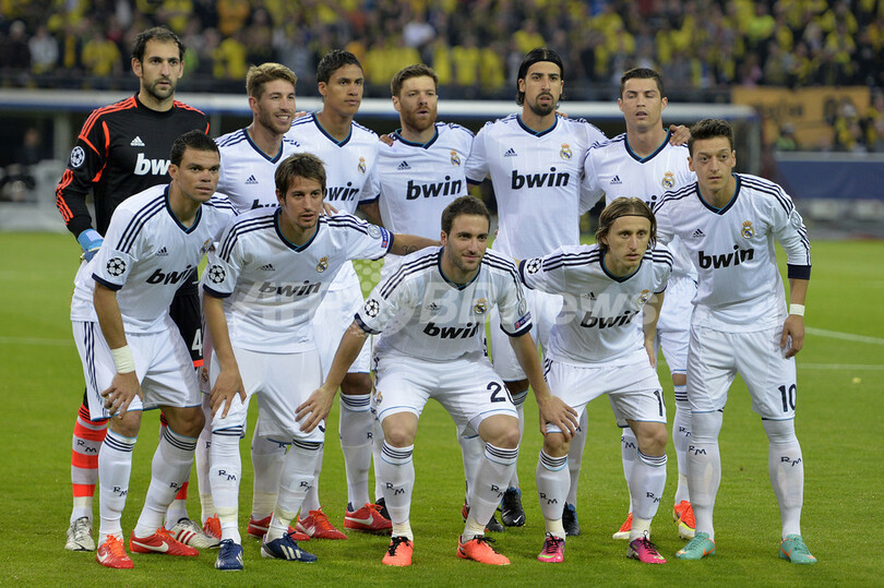 試合前の写真撮影に臨むレアル・マドリードの選手(2013年4月24日撮影)。(c)AFP/ODD ANDERSEN