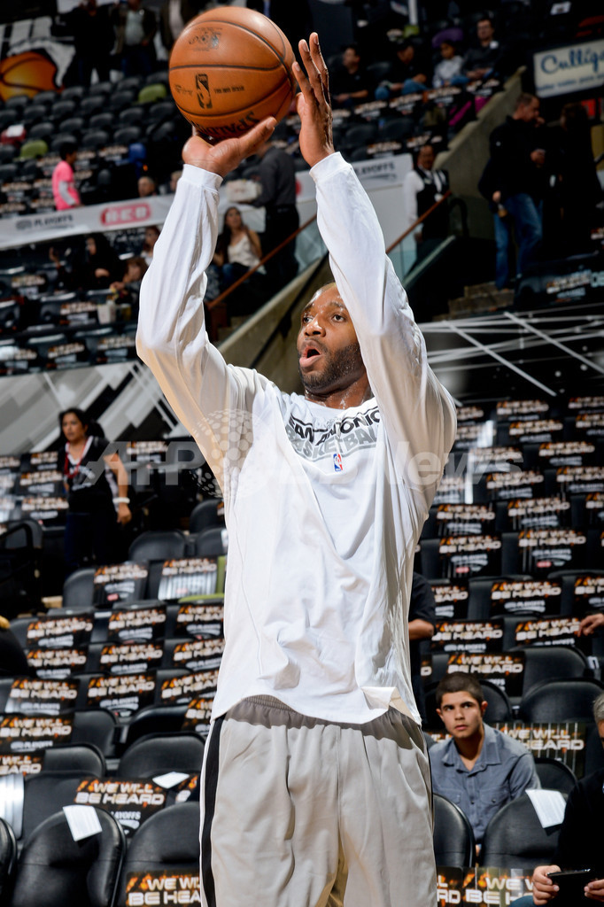 試合前の練習に臨むサンアントニオ・スパーズのトレイシー・マクグレディ(Tracy McGrady、2013年4月24日撮影)。(c)AFP/Getty Images/NBAE/D. Clarke Evans
