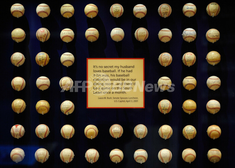 写真は、ブッシュ氏の野球ボールのコレクション(2013年4月24日撮影)。(c)AFP/Getty Images/Kevork Djansezian