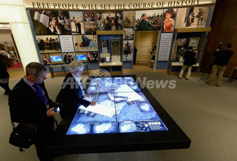 南メソジスト大学(Southern Methodist University)の敷地内にある「ジョージ・W・ブッシュ大統領図書館・記念館(George W. Bush Presidential Library and Museum)」の館内には、テロ攻撃で崩壊した世界貿易センターのねじれた鉄骨や当時の映像、犠牲者たちの名前が刻まれた壁などが展示され、エネルギッシュで愛国心にあふれたブッシュ氏の自信に満ちた姿が伝わってくる。ブッシュ氏は、来館者にこう問いかけることを選んだようだ――「あなたが米大統領だったら、テロやイラク、ハリケーン・カトリーナ、2008年世界金融危機にどのように対処しましたか?」と。(c)AFP