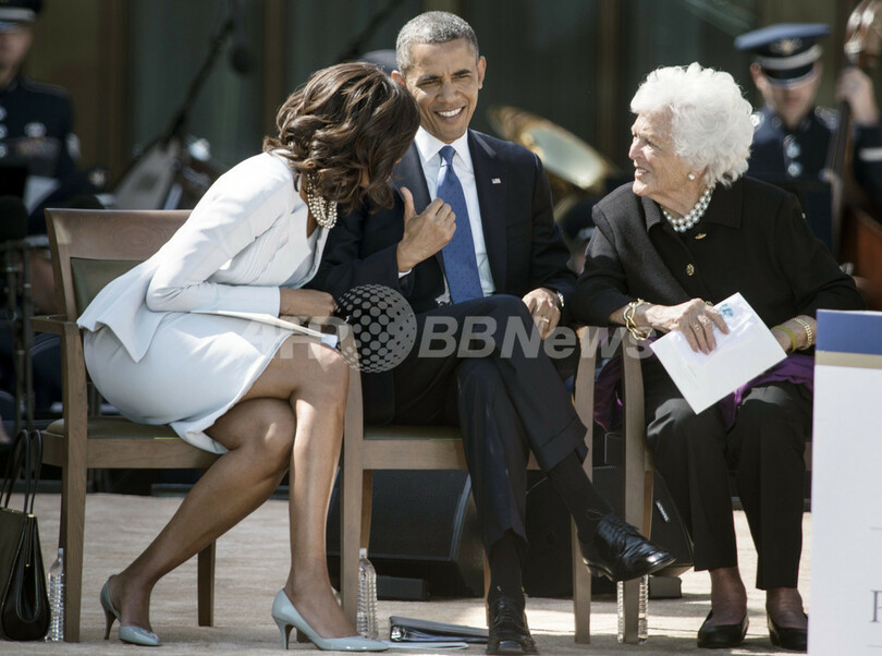 オバマ大統領も、祝辞の中では政策での対立を超えて、テロに対峙したブッシュ氏の勇気を称賛。「米国は、嵐に真正面から立ち向かうことをいとわない指導者が必要だ。それこそ、ブッシュ氏が大統領として選んだことだ」と述べた。(c)AFP/Stephen Collinson