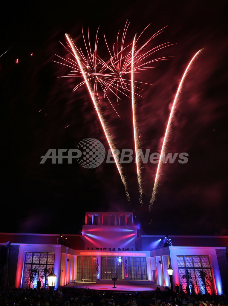 【4月26日 AFP】米テキサス(Texas)州ダラス(Dallas)の南メソジスト大学(Southern Methodist University)で25日に行われたジョージ・W・ブッシュ(George W. Bush)前米大統領(66)の業績を記録した「大統領図書館」の開館式典は、盛大な花火で幕を閉じた。