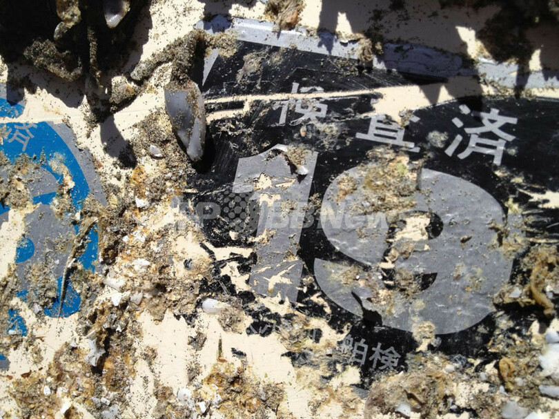写真は、漂着した小型船に書かれた文字(撮影日不明、2013年4月26日提供)。(c)AFP/HUMBOLDT STATE UNIVERSITY/Lori DENGLER