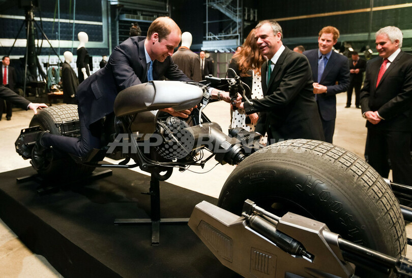 ウィリアム英王子(Prince William)と妻のキャサリン妃(Catherine, Duchess of Cambridge)、弟のヘンリー王子(Prince Henry)は26日、ロンドン(London)郊外リーブスデン(Leavesden)にあるワーナー・ブラザース・スタジオ・リーブスデン(Warner Bros. Studios Leavesden)を訪問し、映画『ハリー・ポッター(Harry Potter)』シリーズのセットなどの展示を楽しんだ(2013年4月26日撮影)。(c)AFP/PAUL ROGERS