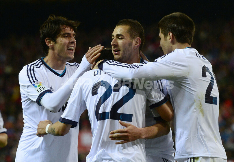 【4月28日 AFP】12-13スペイン1部リーグは27日、第33節の試合が各地で行われ、レアル・マドリード(Real Madrid)は2-1でアトレティコ・マドリード(Atletico de Madrid)を下し、マドリードダービーを制した。