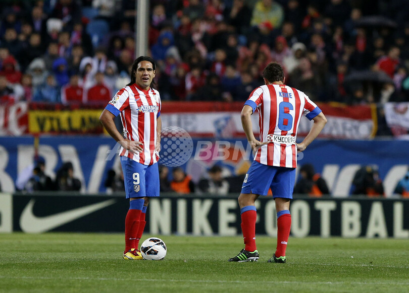 落胆した様子を見せるアトレティコ・マドリードのラダメル・ファルカオ・ガルシア(Radamel Falcao Garcia、左、2013年4月27日撮影)。(c)AFP/CESAR MANSO