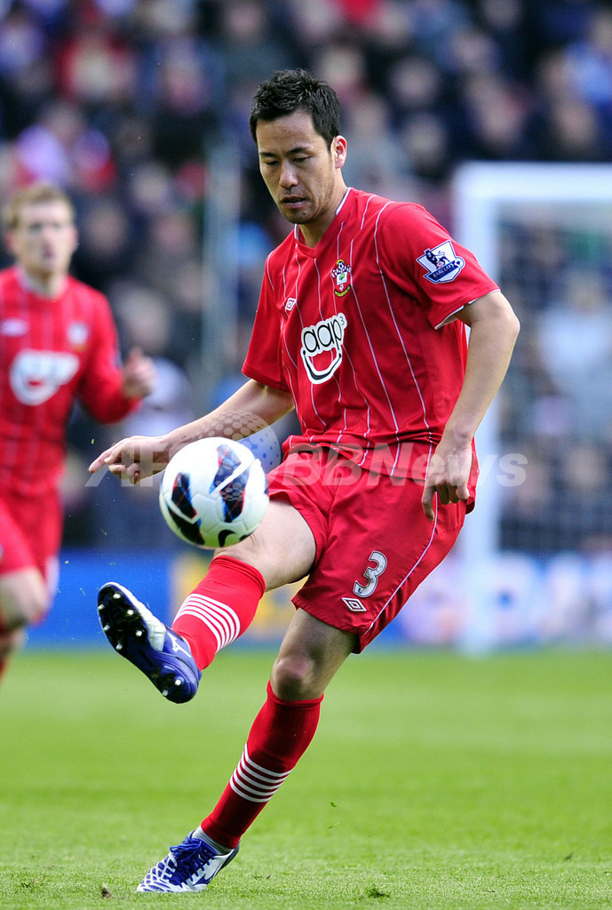 ボールを蹴り出すサウサンプトンの吉田麻也(Maya Yoshida、2013年4月27日撮影)。(c)AFP/GLYN KIRK