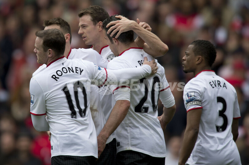 ユナイテッドのロビン・ファン・ペルシー(Robin Van Persie)は古巣の本拠地エミレーツ・スタジアム(Emirates Stadium)で行われた試合で同点ゴールを決め、アーセナルをいら立たせた。