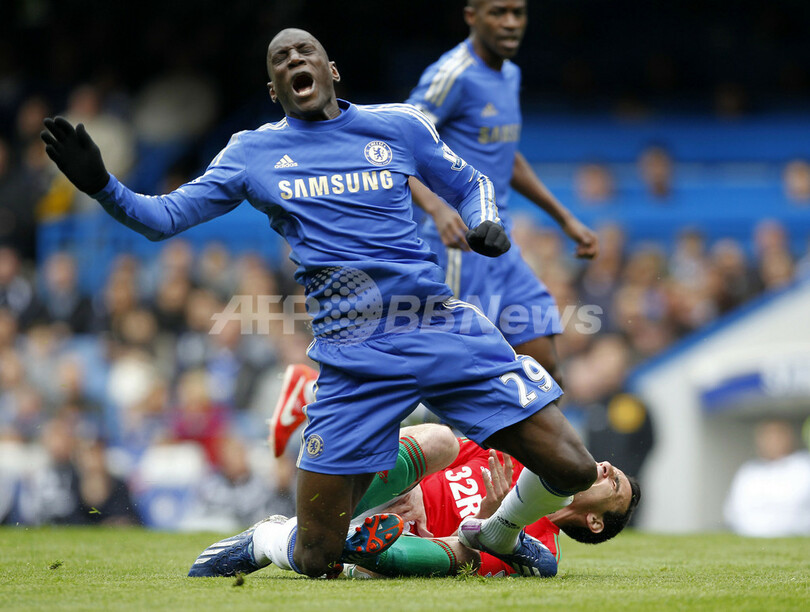 ウィリアムズがチェルシーのデンバ・バ(Demba Ba)を引っ張ったプレーにファウルはないという主審の判定は大勢に影響を与えることはほとんどなく、チェルシーがスウォンジーから快勝を収めた。(c)AFP/Ian Winrow