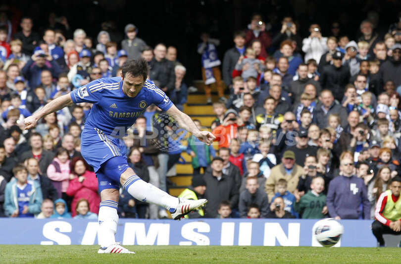 前半ロスタイムにPKで追加点を決めるチェルシーのフランク・ランパード(Frank Lampard、2013年4月28日撮影)。(c)AFP/Ian KINGTON