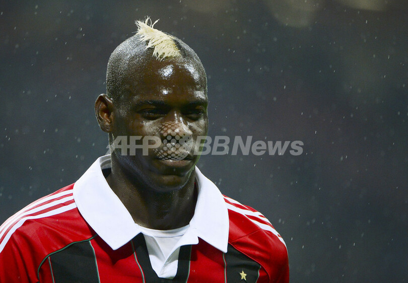 試合に臨むACミランのマリオ・バロテッリ(Mario Barwauh Balotelli、2013年4月28日撮影)。(c)AFP/OLIVIER MORIN