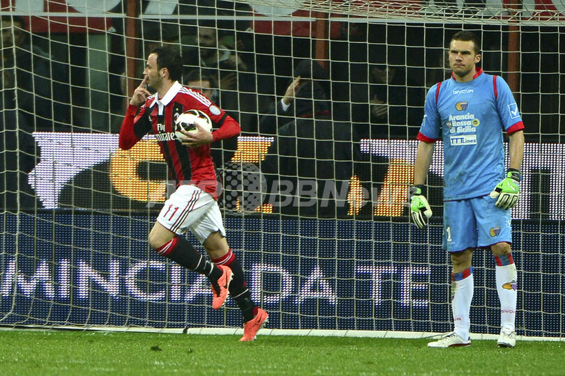 マリオ・バロテッリ(Mario Barwauh Balotelli)、ケヴィン・プリンス・ボアテング(Kevin Prince Boateng)、ステファン・エル・シャーラウィ(Stephan El Shaarawy)らがことごとくチャンスをつぶしたミランは、前半30分にカターニアのニコラ・レグロッターリエ(Nicola Legrottaglie)に先制点を許した。
