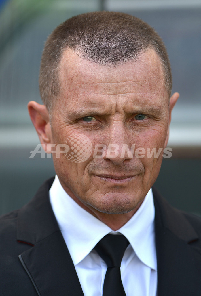 戦況を見つめるASローマのアウレリオ・アンドレアッツォーリ(Aurelio Andreazzoli)暫定監督(2013年4月28日撮影)。(c)AFP/GABRIEL BOUYS