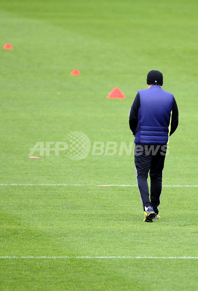 トレーニングを見守るレアル・マドリードのジョゼ・モウリーニョ(Jose Mourinho)監督(2013年4月29日撮影)。(c)AFP/DOMINIQUE FAGET