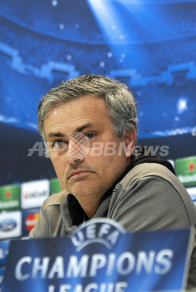 記者会見に臨むレアル・マドリード(Real Madrid)のジョゼ・モウリーニョ(Jose Mourinho)監督(2013年4月29日撮影)。(c)AFP/DOMINIQUE FAGET